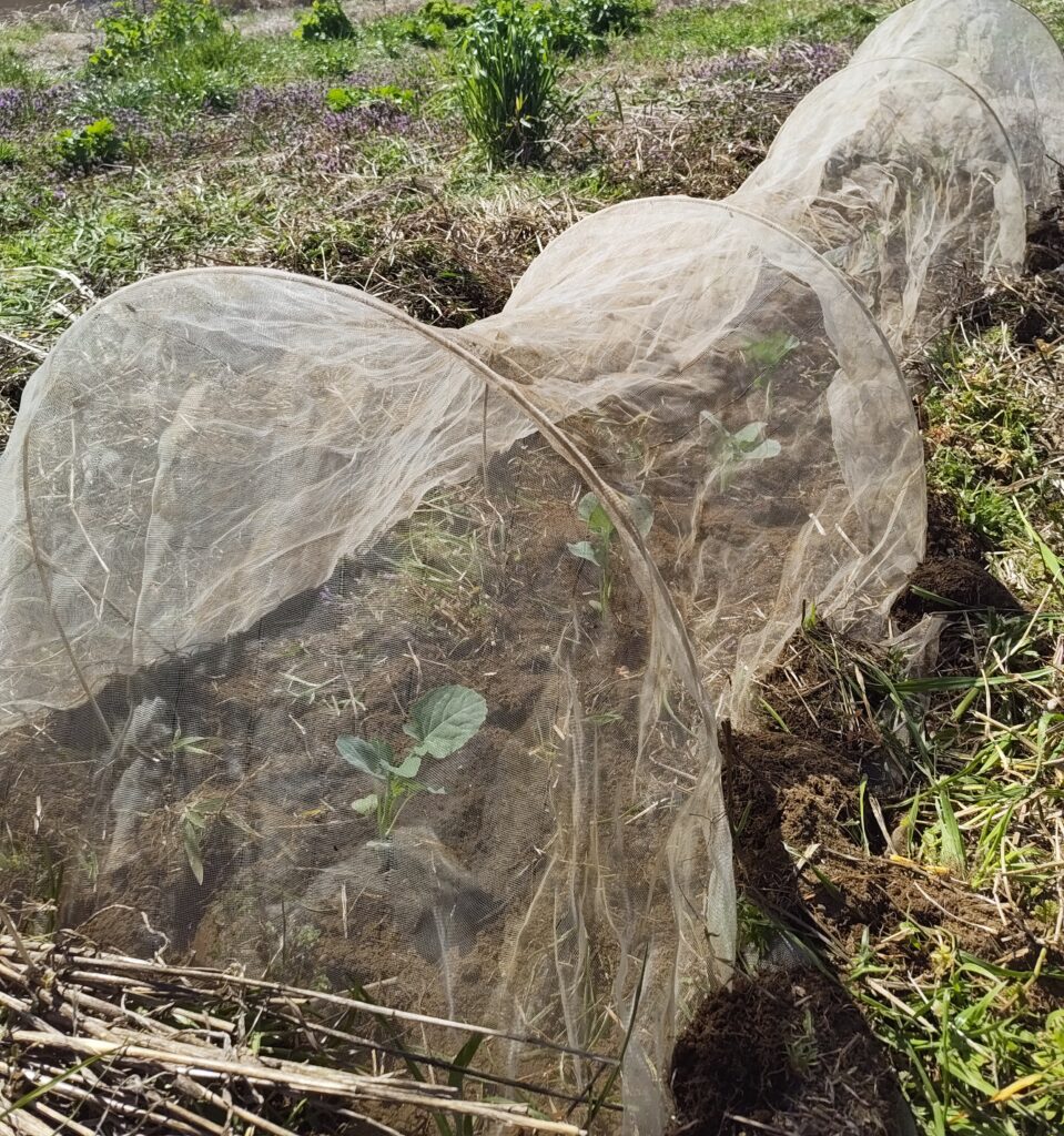 ブロッコリーの苗を植えた。普通のブロッコリーと、スティックセニョールだったかな。4つずつ。青虫がつきそうだと思ったので、ドームを作った。初めてやった。どこからかハエが出てきて、ドームの中、ハエだらけ…。