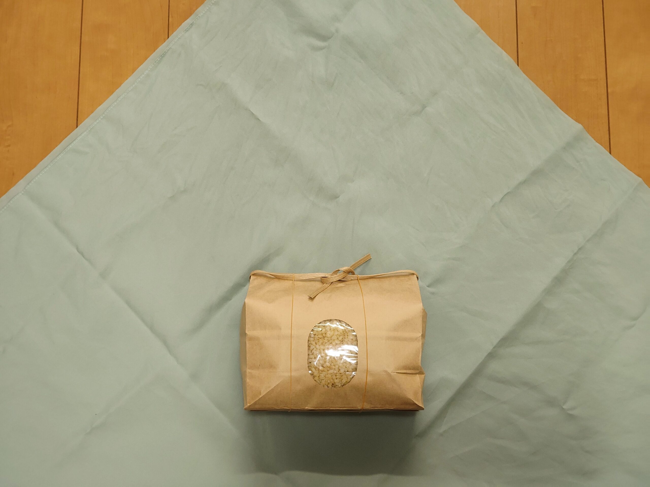ひとかたまりになるように、ぎゅっと。窓付きの米袋だと中が見れて、なんかいい。米袋が開かないように輪ゴムで止めた。